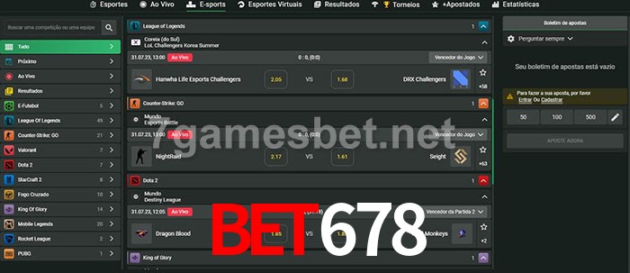 A aposta Bet678 oferece aos jogadores a experiência mais conveniente de apostas em eSports!